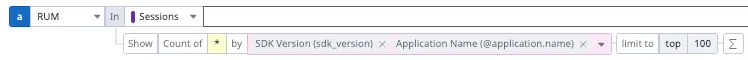 RUM query to list the SDK versions
