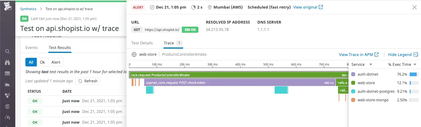 Synthetics and APM correlation
