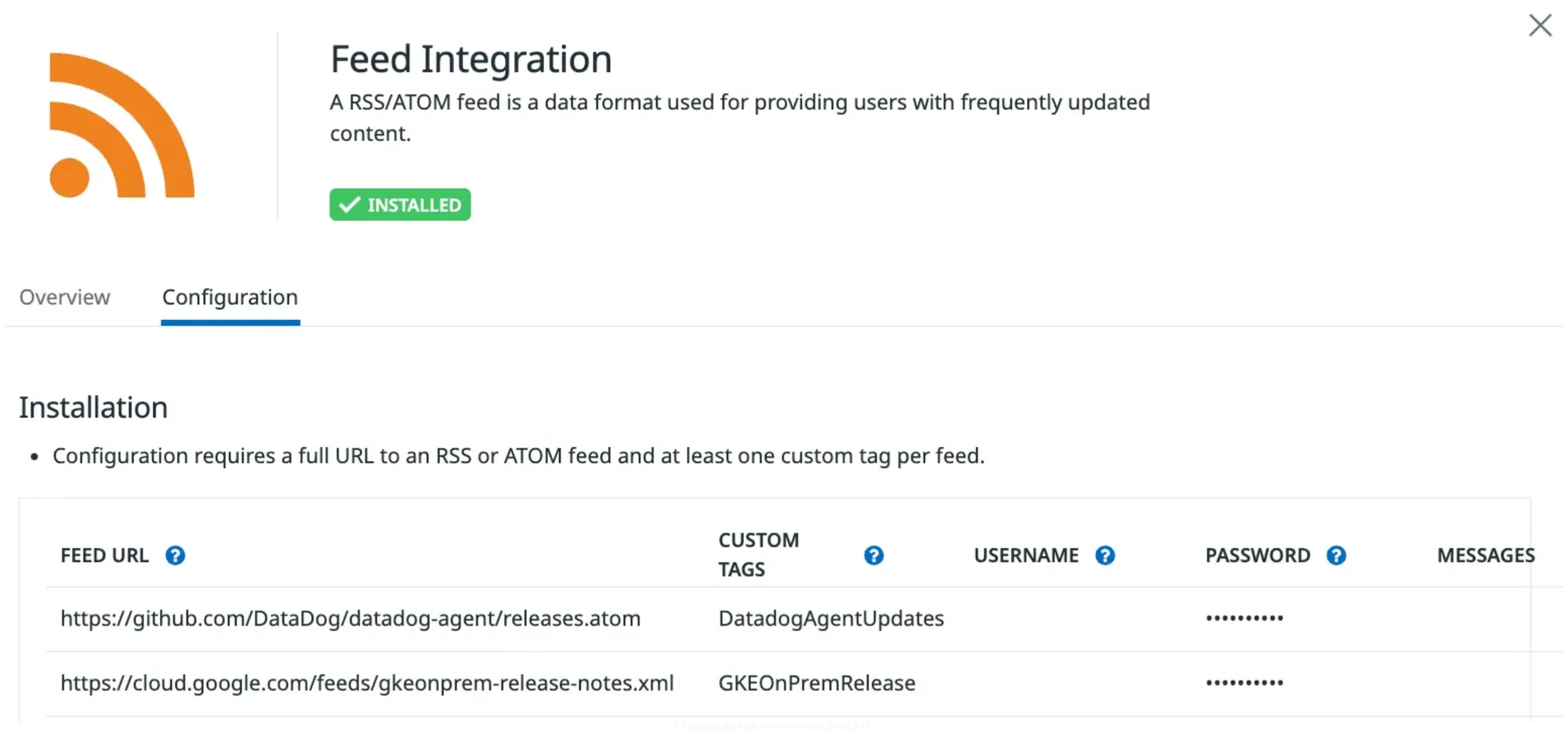 In this example, we’ll utilize the RSS integration and configure it to receive notifications from the Datadog agent repository from this url https://github.com/DataDog/datadog-agent/releases.atom.