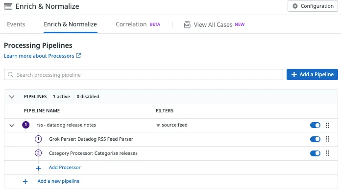 Category processor for Datadog Agent RSS feed