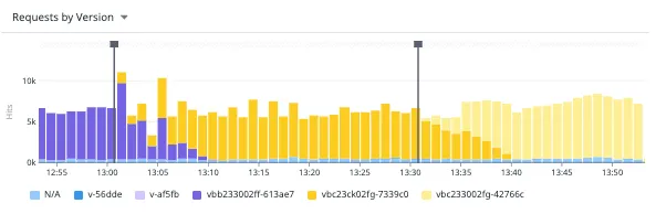 Number of requests per version with an overlay of version change