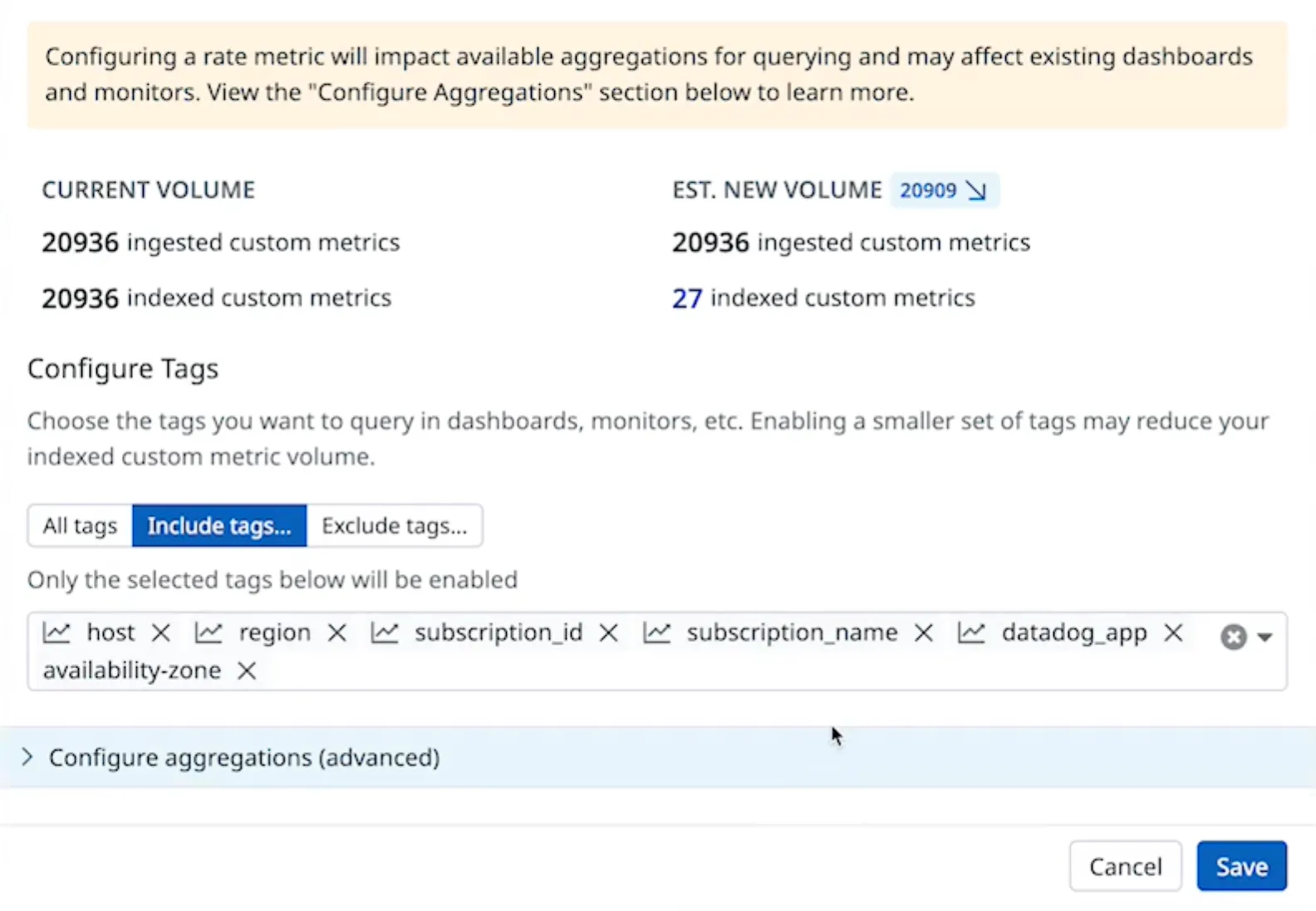 When you analyze which tags are actively queried, you’re essentially auditing your tags for relevance. Tags that aren’t actively used can often be removed or consolidated into broader categories, helping reduce the overall cardinality. In turn, this reduces the number of timeseries Datadog needs to store, ultimately bringing down your indexing costs.